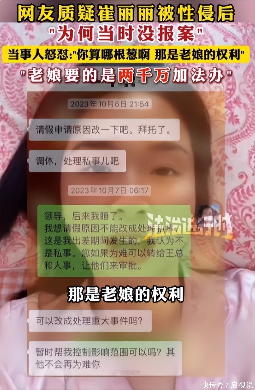 面对质疑,崔丽丽坦言,当时精神恍惚,记忆断裂,甚至无法确认是否真的发生了侵害行为。