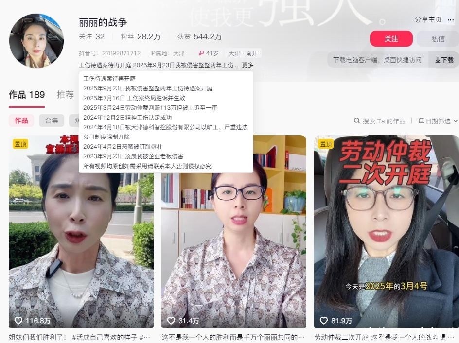事实上,自事件发酵以来,崔丽丽便注册了名为“丽丽的战争”的社交账号,持续记录维权进程。