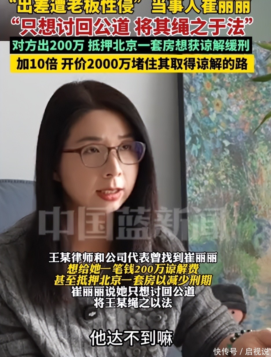 在中国蓝新闻的深度专访中,崔丽丽直言不讳:提出2000万的真实意图,就是切断王某走“花钱买平安”的捷径。