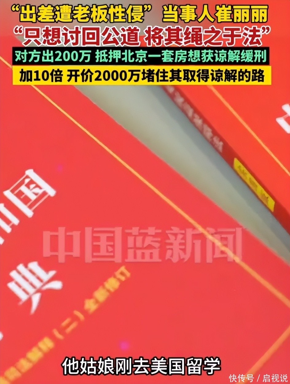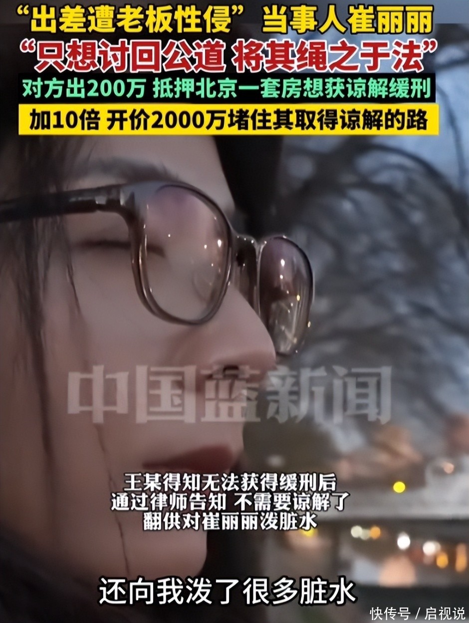 中国蓝新闻---#中国蓝新闻专访崔丽#12月17日,崔丽丽发视频说已被正式评定为工伤伤残十级。在接受中国蓝新闻专访时,崔丽明回应为什么要开出2000万的天价,是想堵了王某想要取得谅解的路。